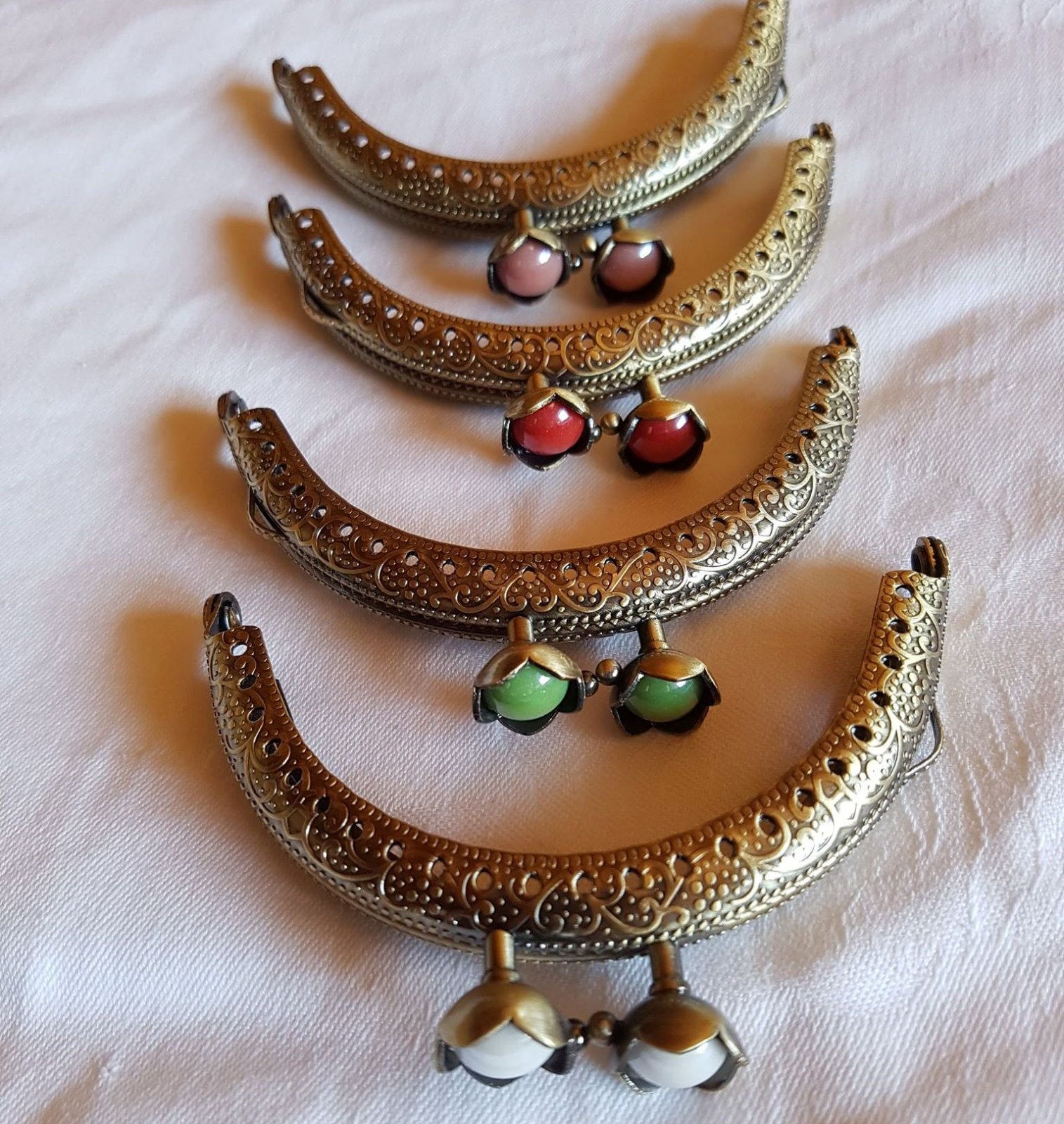 8.5cm sew in Purse Frame. Colours in stock: red, cream, pink, and black.