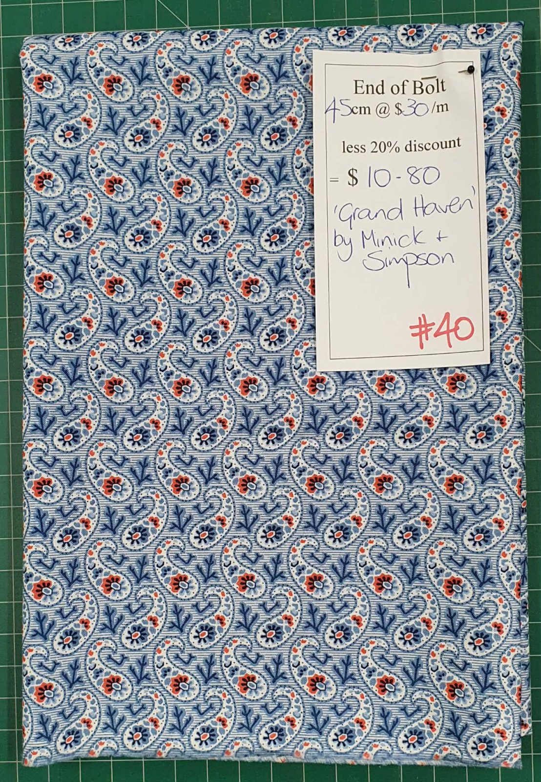 Save 20% on these End of Bolt pieces. They vary in size and only one of each is available.....once sold that's it!